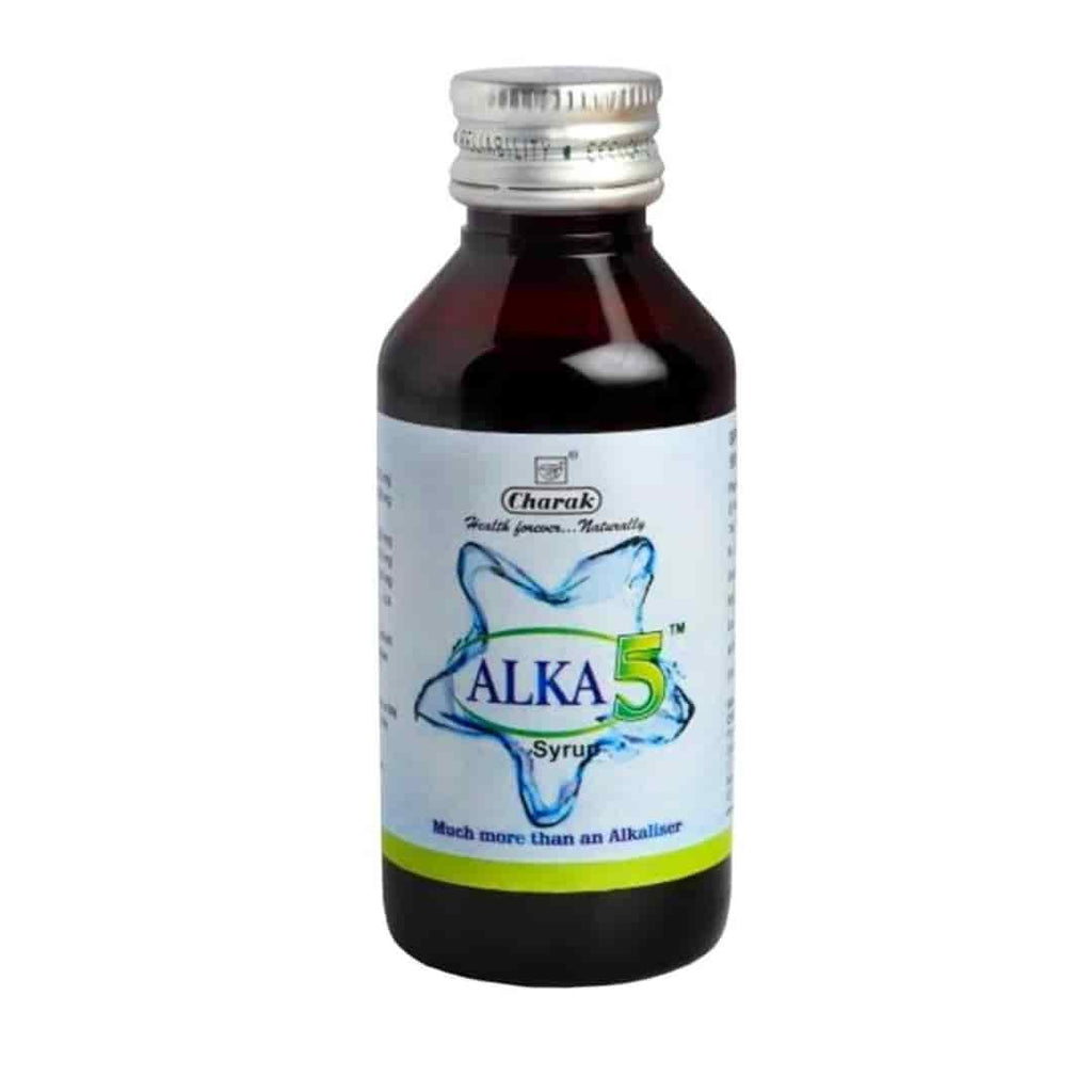 Charak Alka 5 is a herbal Syrup that works as an alkaliser in the human body. Alka Syrup helps in maintaining the normal urine pH balance. The syrup is recommended for the treatment of urinary tract infections, urethritis, cystitis and sunstroke. Alka 5 syrup is a natural alkaliser that helps to maintain a normal urine pH balance